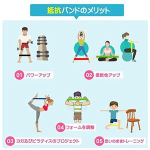 「仕様」 レッド:周長208cm、厚み0.45cm、幅1.3cm、116g、約15~25ポンド(7~11kg)・ ブラック:周長208cm、厚み0.45cm、幅2.2cm、186g、約50~75ポンド(23~34kg)・ パープル:周長208cm、厚み0.45cm、幅3.2cm、282g、約100~120ポンド(45~54kg)・ グリーン:周長208cm、厚み0.45cm、幅4.5cm、436g、約120~175ポンド(54~79kg)。 素材:天然ラテックス製。 カラー:レッド・ブラック・パープル・グリーン強度別4本セット。