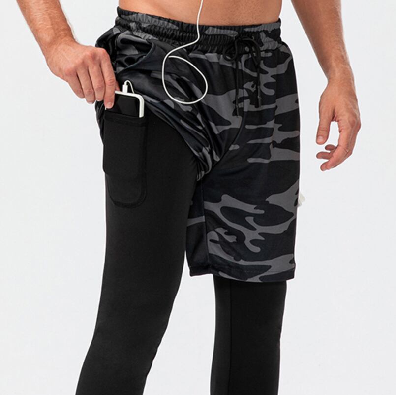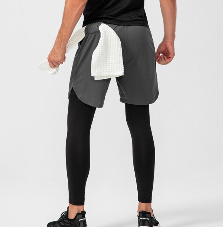 新作 ショート レギンス パンツ レギンス メンズ フェイクレイヤード トレーニング ランニング ズボン