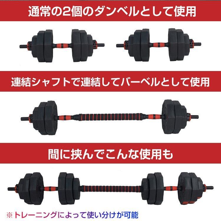 ■2個のダンベルをシャフトで連結してバーベルでの使用も